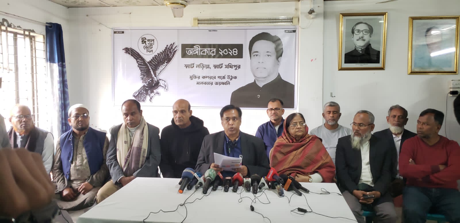 সোমবার (১ জানুয়ারী) বেলা সাড়ে ১১ টার দিকে নড়িয়া পলিটেকনিক ইনস্টিটিউটে সংবাদ সম্মেলনে এসব কথা বলেন আওয়ামী যুবলীগের সভাপতি মন্ডলীর সদস্য ও শরীয়তপুর-২ আসনের ঈগল প্রতীকের স্বতন্ত্র প্রার্থী খালেদ শওকত আলী। সংবাদ সম্মেলনে তিনি বাংলাদেশ আওয়ামী লীগ কর্তৃক প্রদত্ত নির্বাচনী ইশতেহারে পূর্ণ সমর্থন জানান।