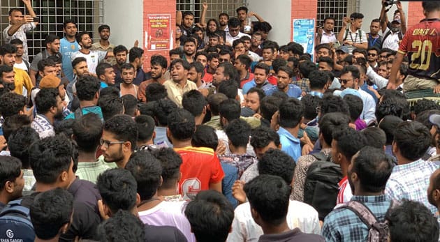 বেলা ১১টার দিকে বৈষম্যবিরোধী ছাত্র আন্দোলনের সাবেক সমন্বয়ক সালাউদ্দিন আম্মারসহ কয়েকজন শিক্ষার্থী মনোনয়ন ফরম নিতে গেলে ছাত্রদলের বাধার মুখে পড়েন। এসময় উভয়পক্ষের মধ্যে তর্কাতর্কি, ধাক্কাধাক্কি ও হাতাহাতির ঘটনা ঘটে। পরিস্থিতি ঘোলাটে হয়ে উঠলে সাধারণ শিক্ষার্থীরা দুপুর ১২টা ৩০ মিনিটে ছাত্রদলকে ১০ মিনিট সময় বেঁধে দেন তালা খুলে দেওয়ার জন্য। কিন্তু নির্ধারিত সময়ের মধ্যে তালা না খোলা হলে শিক্ষার্থীরা একজোট হয়ে তালা ভেঙে দেন।