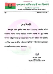 তবে পরবর্তীতে তার সাংগঠনিক কার্যক্রম, নিষ্ঠা ও দলীয় কর্মকাণ্ডে সক্রিয় অংশগ্রহণ বিবেচনায় নিয়ে নড়িয়া উপজেলা বিএনপি কর্তৃক গঠনতন্ত্র মোতাবেক তার বহিষ্কারাদেশ প্রত্যাহার করা হয়েছে।