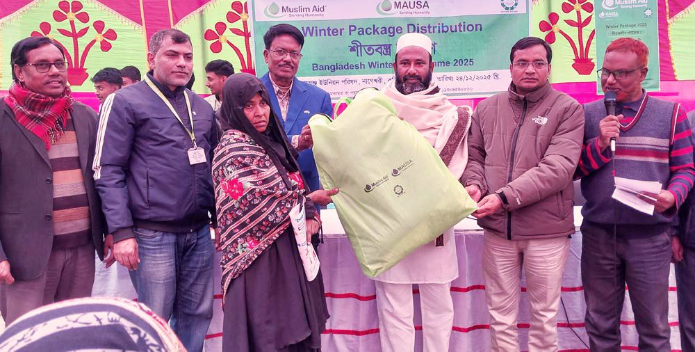 কুড়িগ্রামের নাগেশ্বরীতে শীতার্ত ও দরিদ্র পরিবারের মাঝে শীতবস্ত্র বস্ত্র প্যাকেজ বিতরণ করা হয়েছে। মুসলিম এইড ইউকে বাংলাদেশ কান্ট্রি অফিস এর অর্থায়নে এবং মহিদেব যুব সমাজ কল্যাণ সমিতির বাস্তবায়নে এবং মুসলিম এইড ইউকে ও মুসলিম এইড ইউএসএ আর আর্থিক সহযোগিতায় মঙ্গল ও বুধবার ( ২৩ ও ২৪ ডিসেম্বর) নাগেশ্বরী উপজেলার রায়গঞ্জ ও কালিগঞ্জ ইউনিয়ন, উলিপুর উপজেলার বজরা ও গুনাইগাছ ইউনিয়ন, লালমনিরহাটের আদিতমারী উপজেলার পলাশী ও মহিষখোচা ইউনিয়ন, হাতিবান্ধা উপজেলার সিন্দুর্ণা, ডাউয়াবাড়ী ইউনিয়নের ১ হাজার ৮২২টি শীতার্ত দরিদ্র পরিবারের বিশেষত বয়স্ক, অসুস্থ, প্রতিবন্ধী ব্যক্তির মাঝে এসব শীতকালীন বস্ত্র প্যাকেজ বিতরণ করা হয়। প্যাকেজে প্রতি পরিবারকে একটি করে কম্বল, ৪টি সোয়েটার, ৪টি মানকি ক্যাপ, ৪ জোড়া মোজা এবং ৫টি করে পেট্রোলিয়াম জেলি প্রদান করা হয়। নাগেশ্বরীর রায়গঞ্জ ইউনিয়ন পরিষদ মাঠে ইউপি চেয়ারম্যান আরিফুজ্জামান দিপ মন্ডলের সভাপতিত্বে বুধবার বিতরণকালে প্রধান অতিথি হিসেবে বক্তব্য রাখেন উপজেলা বিআরডিবি কর্মকর্তা গোলাম মোস্তফা, বিশেষ অতিথি মহিদেব যুব সমাজ কল্যাণ সমিতির পরিচালক শ্যামল চন্দ্র সরকার, মুসলিম এইড ইউকের প্রজেক্ট কো-অর্ডিনেটর প্রশেনজিৎ রায়, প্রোগ্রাম ম্যানেজার মোত্তাসিম বিল্লাহ, সিএনবি প্রজেক্টের প্রজেক্ট কো-অর্ডিনেটর মাহমুদুল হাসান, টেকনিক্যাল অফিসার ইলিয়াস হোসাইন প্রমুখ।