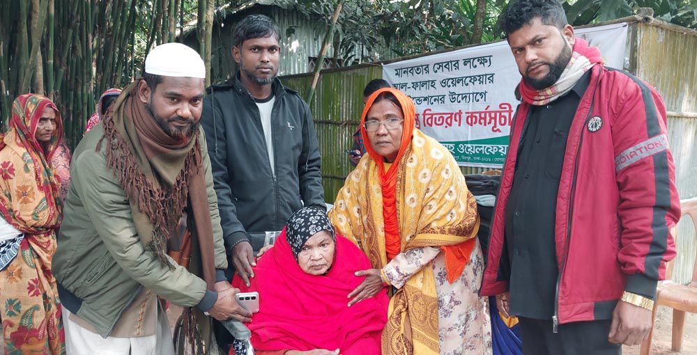 নাগেশ্বরীতে প্রতিবন্ধী, বিধবা ও বয়স্ক মানুষের মাঝে কম্বল বিতরণ।