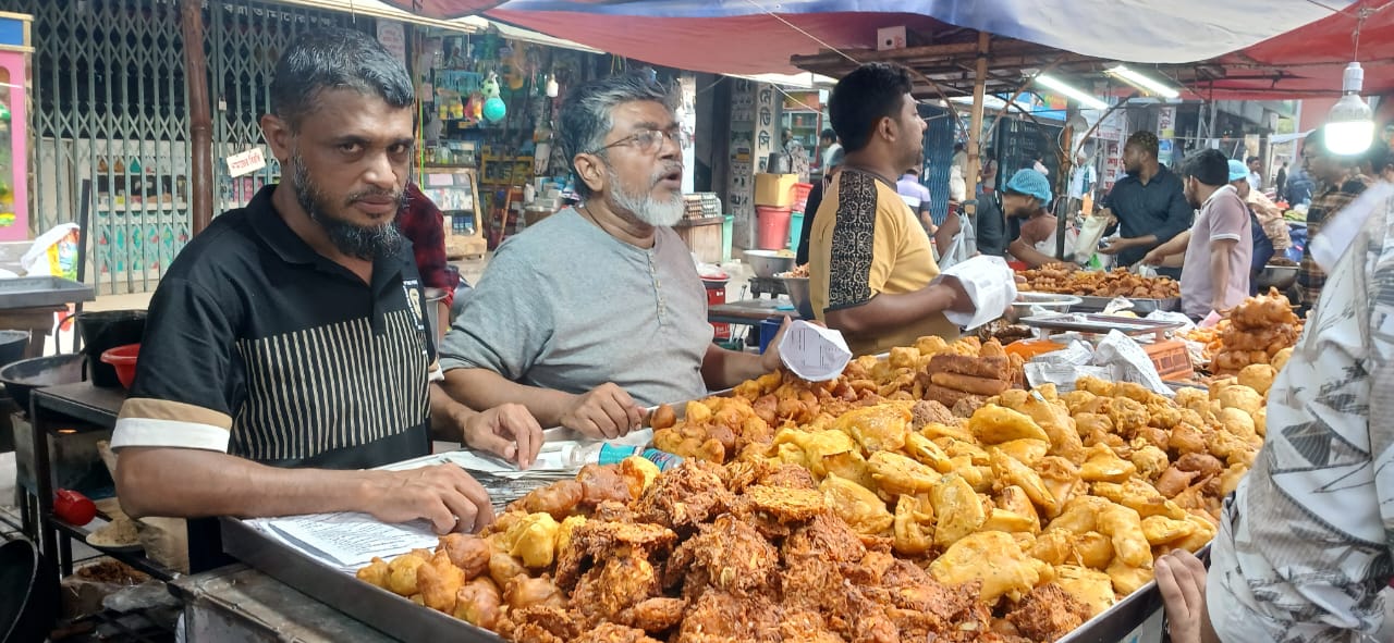 দুপুর থেকেই চলছে ইফতার সামগ্রী প্রস্তুতের ব্যস্ততা। পিয়াজি, চপ, জিলাপি, বেগুনি, হালিম, রসুনের চপ, তেহারি ও বিরিয়ানির সমারোহ—সব মিলিয়ে যেন স্বাদের এক উৎসব।