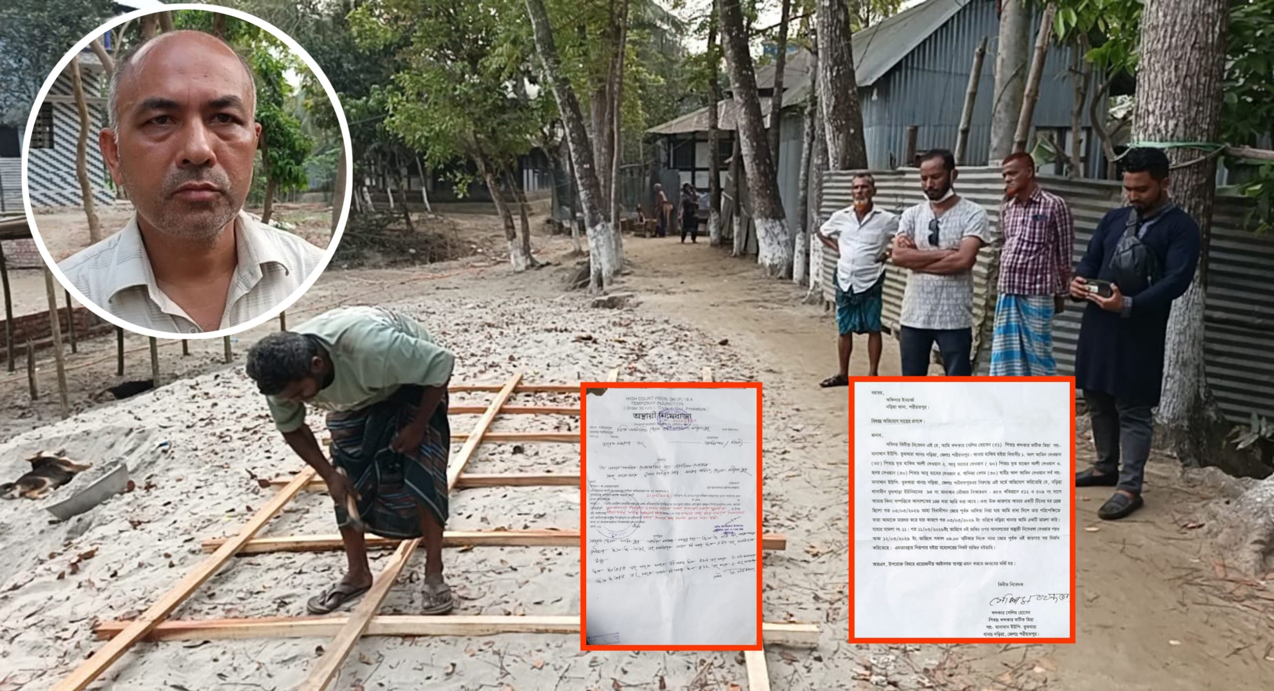 নড়িয়ায় আদালতের নিষেধাজ্ঞা অমান্য করে ঘর নির্মাণের অভিযোগ প্রতিপক্ষের বিরুদ্ধে।