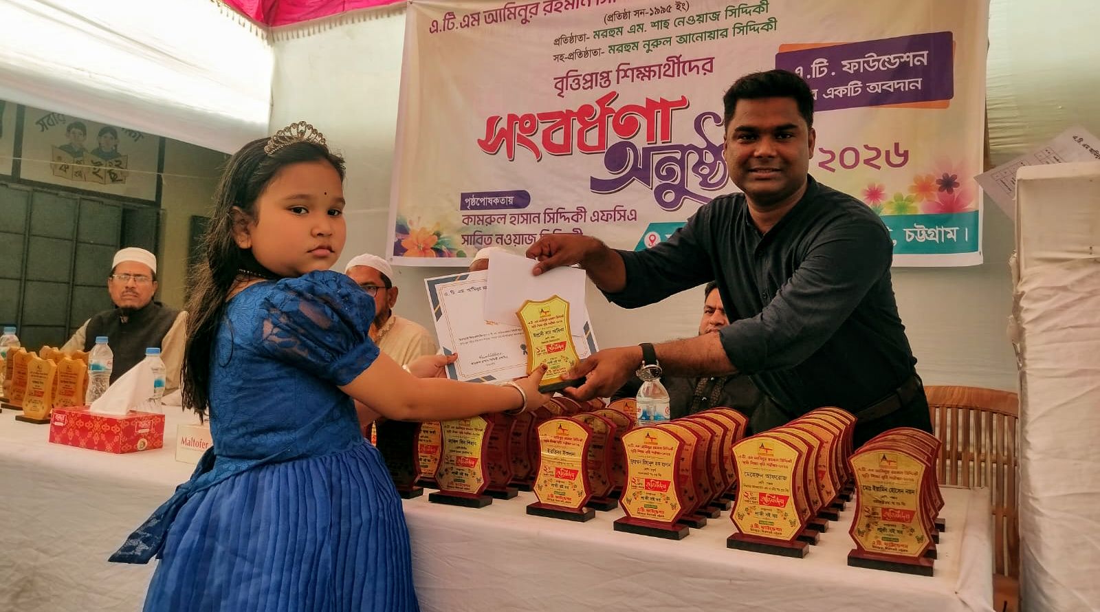 গত ২৫ শে মার্চ,২৬ রোজ বুধবার বিকাল ৩ ঘটিকায় এ.টি. এম আমিনুর রহমান সিদ্দিকী স্মৃতি শিক্ষা বৃত্তি পরীক্ষায় যে সকল শিক্ষার্থী ট্যালেন্টফুল ও সাধারণ গ্রেডে বৃত্তি পেয়েছে তাদের হাতে পুরস্কার তুলে দেন। অনুষ্ঠানটি আয়োজন করা হয় মিরসরাই উপজেলার মিঠাছড়া বাজার সংলগ্ন এ. টি. একাডেমী স্কুল মাঠে।